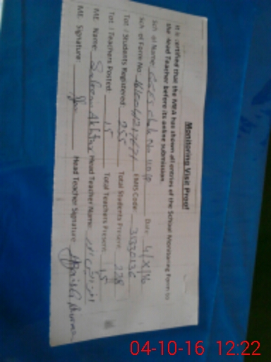 | Certified that this School was Inspected by the Undersigned MEA/DMO Today and the Information Stated Above is as Per Record. | |||||