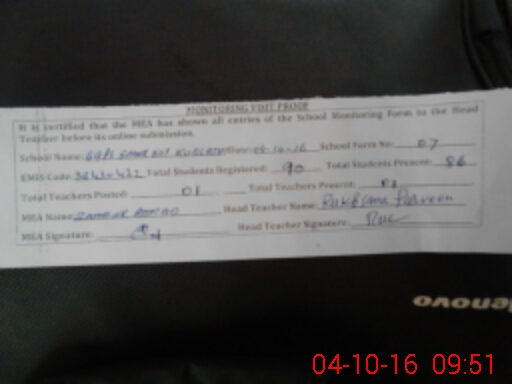 | Attendance Register | Head Teacher | MEA with School | Visit Proof |