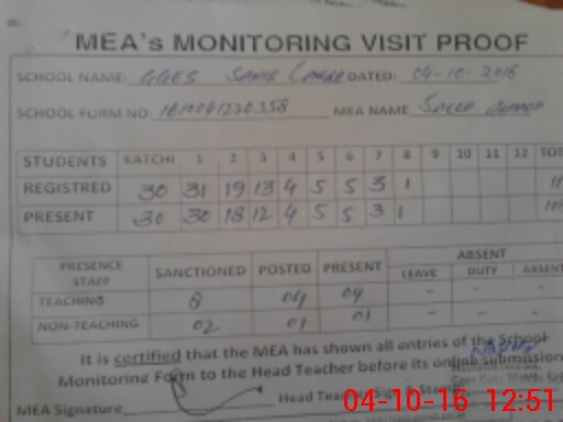 | Certified that this School was Inspected by the Undersigned MEA/DMO Today and the Information Stated Above is as Per Record. | |||||