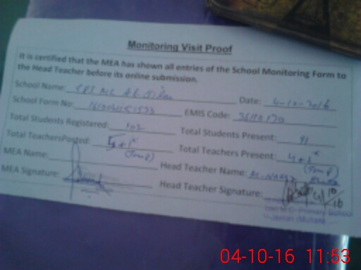 | EMIS Code: 36110170 | Name of School: GES MC AL-JEELLAN WALA MULTAN | |||