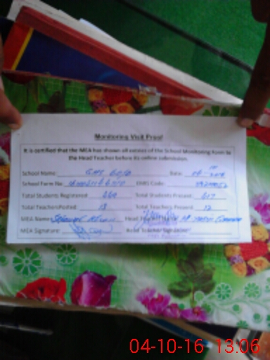 | Attendance Register | Head Teacher | MEA with School | Visit Proof |