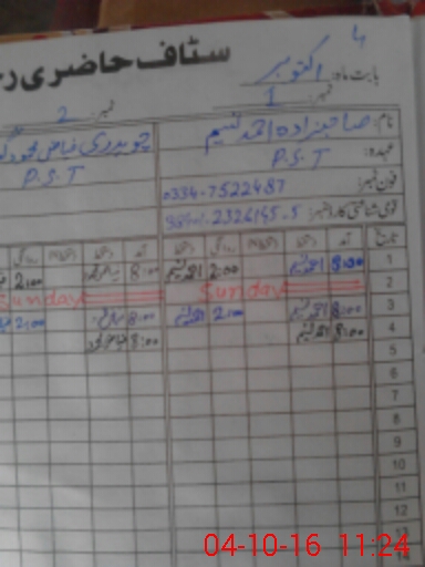 | Name: AH**** NA**** Designation: (School Headmaster's/Headmistress's) PST Phone/Cell Number: 03**** |