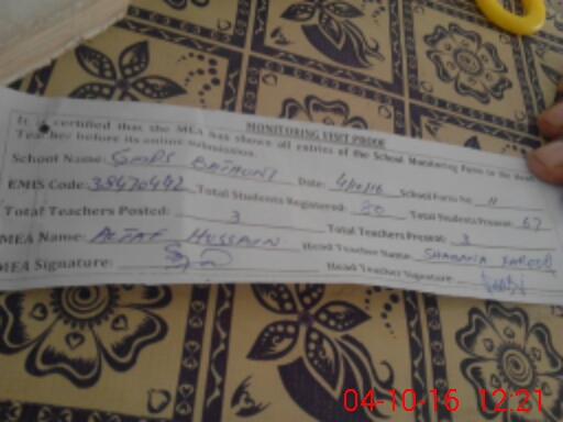 | EMIS Code: 38470442 | Name of School: GMPS BATHUNI | |||