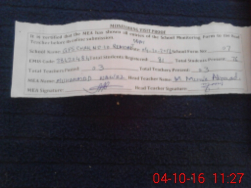 | Attendance Register | Head Teacher | MEA with School | Visit Proof |