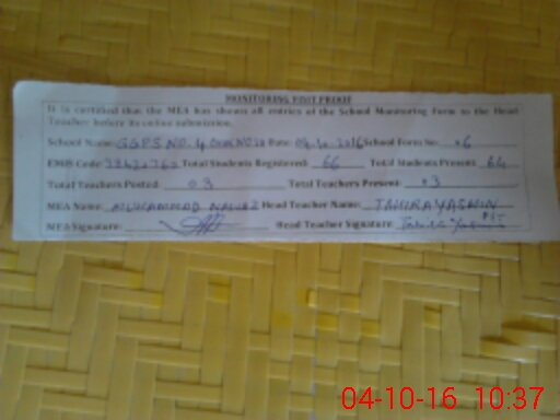 | EMIS Code: 38420760 | Name of School: GGPS NO.4 CHAK NO.10 REMOUNT DEPOT SARGODHA | |||