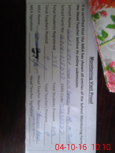 | Certified that this School was Inspected by the Undersigned MEA/DMO Today and the Information Stated Above is as Per Record. | |||||