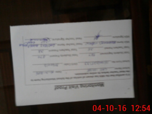| Monitoring Date: 04-10-2016 | Start Time: 04-10-2016 11:50 AM | End Time: 04-10-2016 12:54 PM | Name of MEA: Mu**** Am**** BN**** 04 | |