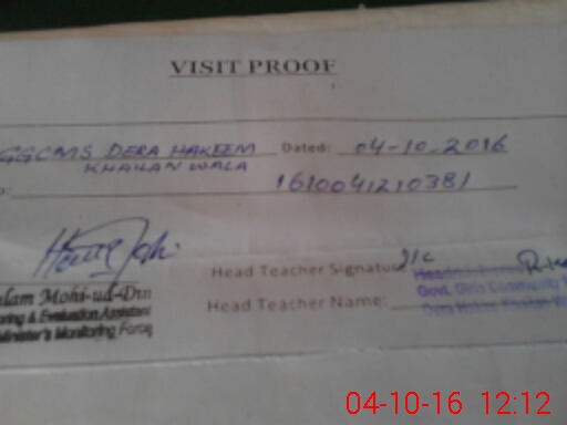 | EMIS Code: 38230549 | Name of School: GGCMS DERA HAKEEM KHILAN WALA | |||