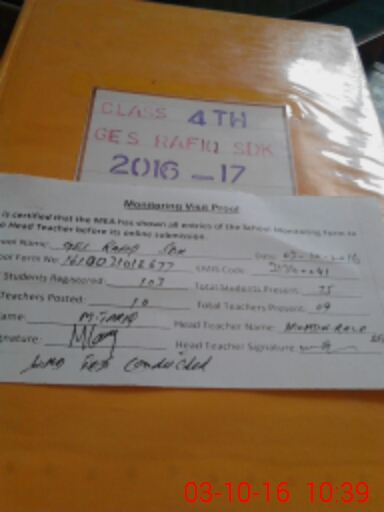 | EMIS Code: 31340041 | Name of School: GES RAFIQUE | |||