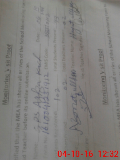 | Monitoring Date: 04-10-2016 | Start Time: 04-10-2016 12:17 PM | End Time: 04-10-2016 12:34 PM | Name of MEA: Mu**** Az**** Ul**** Kh**** Ni**** (R**** | |