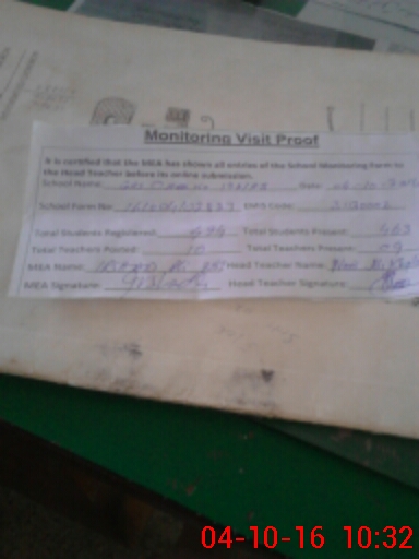 | Attendance Register | Head Teacher | MEA with School | Visit Proof |