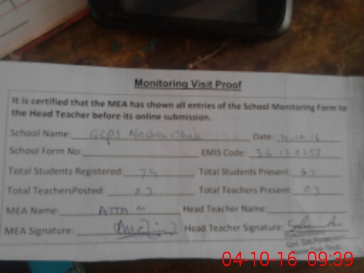 | EMIS Code: 36120258 | Name of School: GMPS NAWAN CHAK | |||