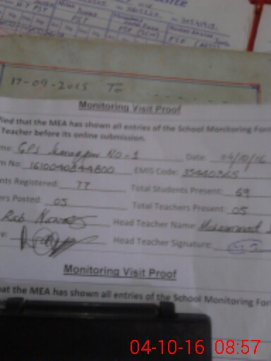 | Attendance Register | Head Teacher | MEA with School | Visit Proof |