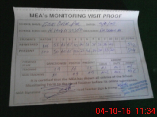 | Attendance Register | Head Teacher | MEA with School | Visit Proof |