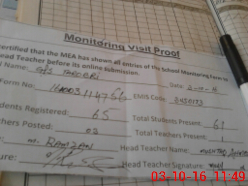 | Attendance Register | Head Teacher | MEA with School | Visit Proof |