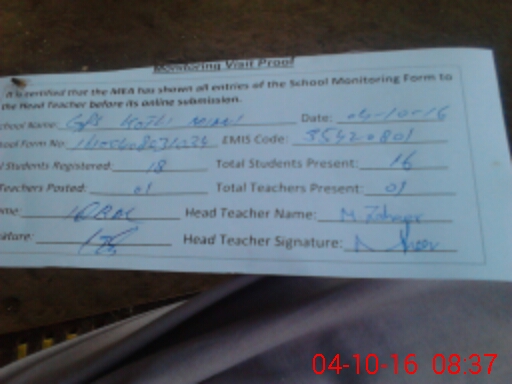 | EMIS Code: 35420801 | Name of School: GPS KOTLI MIANI | |||