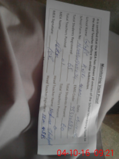 | Attendance Register | Head Teacher | MEA with School | Visit Proof |