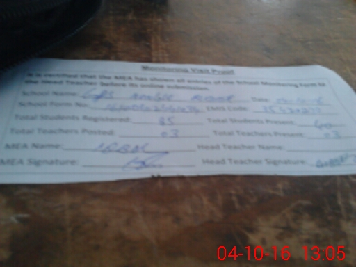 | Attendance Register | Head Teacher | MEA with School | Visit Proof |