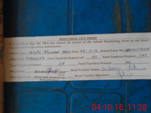 | Attendance Register | Head Teacher | MEA with School | Visit Proof |