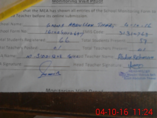 | EMIS Code: 31310763 | Name of School: GPS ABDULLAH THARI | |||