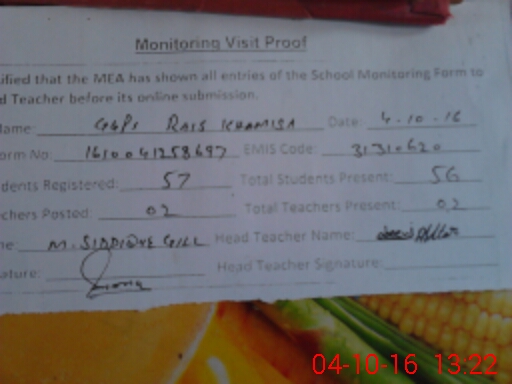 | EMIS Code: 31310620 | Name of School: GGPS RAIS KHAMISA | |||