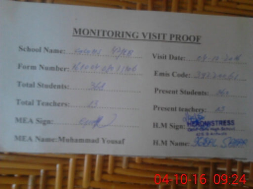 | Certified that this School was Inspected by the Undersigned MEA/DMO Today and the Information Stated Above is as Per Record. | |||||