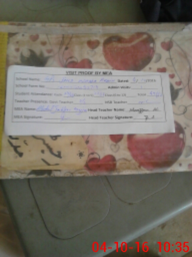 | Attendance Register | Head Teacher | MEA with School | Visit Proof |