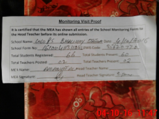 | Attendance Register | Head Teacher | MEA with School | Visit Proof |