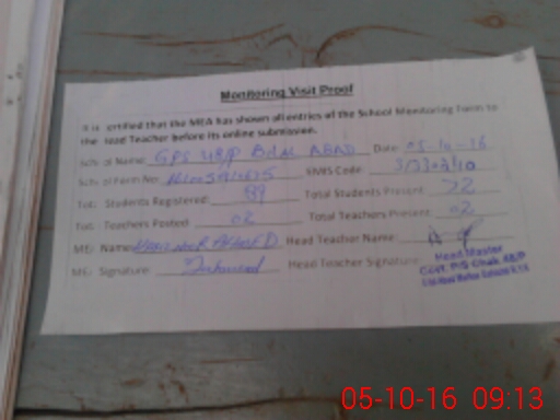 | EMIS Code: 31330240 | Name of School: GPS 48/P BILAL ABAD | |||