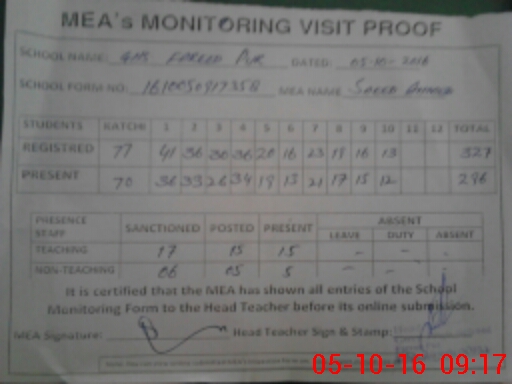 | Certified that this School was Inspected by the Undersigned MEA/DMO Today and the Information Stated Above is as Per Record. | |||||
