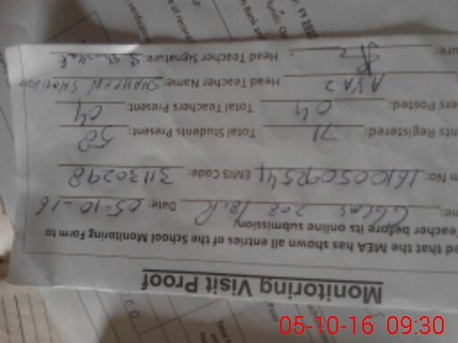 | Attendance Register | Head Teacher | MEA with School | Visit Proof |