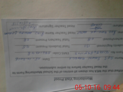 | Attendance Register | Head Teacher | MEA with School | Visit Proof |