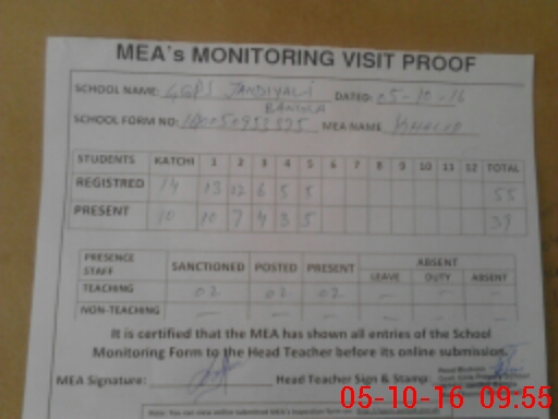 | Certified that this School was Inspected by the Undersigned MEA/DMO Today and the Information Stated Above is as Per Record. | |||||