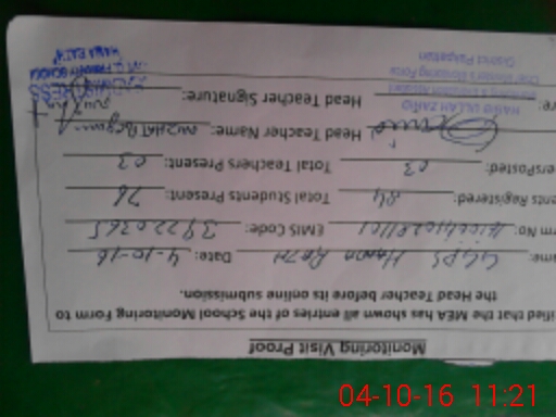| Certified that this School was Inspected by the Undersigned MEA/DMO Today and the Information Stated Above is as Per Record. | |||||