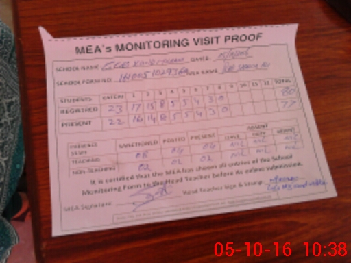 | Attendance Register | Head Teacher | MEA with School | Visit Proof |