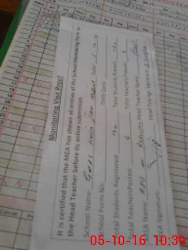 | Attendance Register | Head Teacher | MEA with School | Visit Proof |