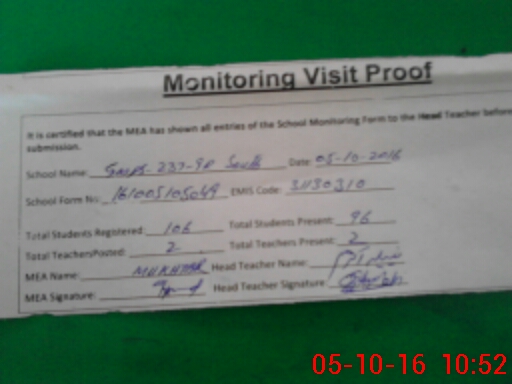 | Certified that this School was Inspected by the Undersigned MEA/DMO Today and the Information Stated Above is as Per Record. | |||||
