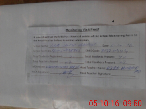 | Attendance Register | Head Teacher | MEA with School | Visit Proof |