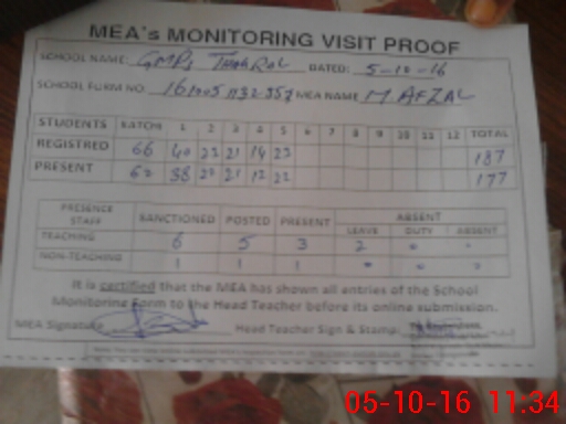 | Attendance Register | Head Teacher | MEA with School | Visit Proof |