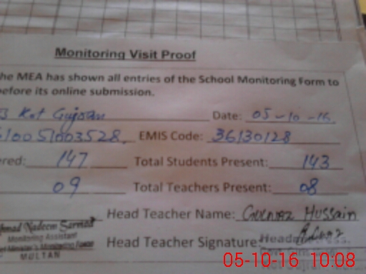 | EMIS Code: 36130128 | Name of School: GGES KOT GUJRAN P/O KOT GUJRAN | |||