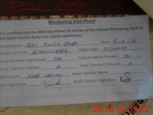 | Certified that this School was Inspected by the Undersigned MEA/DMO Today and the Information Stated Above is as Per Record. | |||||