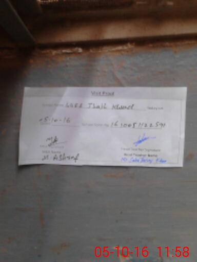 | Monitoring Date: 05-10-2016 | Start Time: 05-10-2016 11:22 AM | End Time: 05-10-2016 11:59 AM | Name of MEA: MU**** TA**** | |
