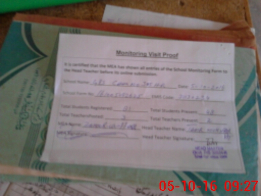 | Attendance Register | Head Teacher | MEA with School | Visit Proof |