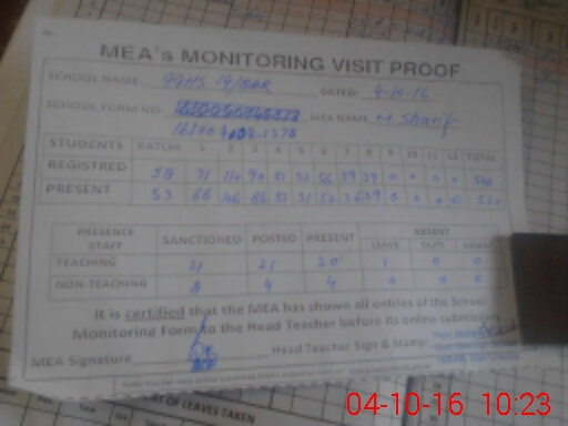 | Certified that this School was Inspected by the Undersigned MEA/DMO Today and the Information Stated Above is as Per Record. | |||||