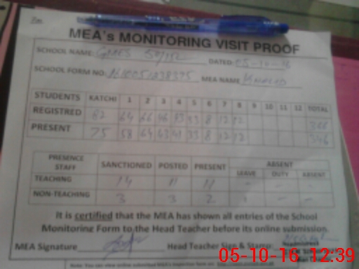 | Certified that this School was Inspected by the Undersigned MEA/DMO Today and the Information Stated Above is as Per Record. | |||||