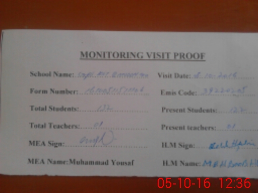 | Certified that this School was Inspected by the Undersigned MEA/DMO Today and the Information Stated Above is as Per Record. | |||||