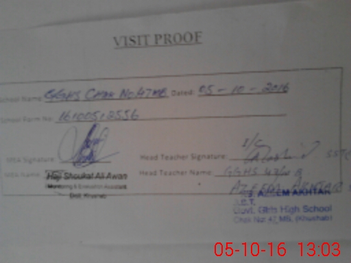 | EMIS Code: 38210925 | Name of School: GGHS CHAK NO 47 MB | |||
