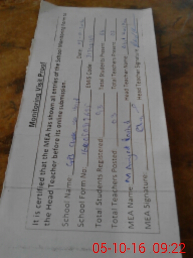 | Attendance Register | Head Teacher | MEA with School | Visit Proof |