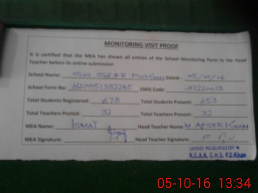 | Certified that this School was Inspected by the Undersigned MEA/DMO Today and the Information Stated Above is as Per Record. | |||||