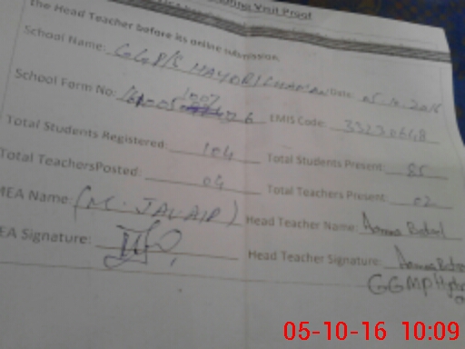 | Certified that this School was Inspected by the Undersigned MEA/DMO Today and the Information Stated Above is as Per Record. | |||||
